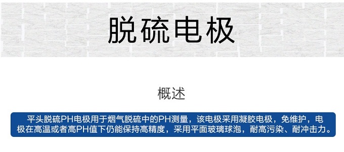 SIN-5012脫硫電極用于煙氣脫硫中的pH測量,該電極采用凝聚電極,免維護(hù),電極在高溫或者高pH值下仍能保持高精度,采用平面玻璃球泡,耐高污染、耐沖擊力。