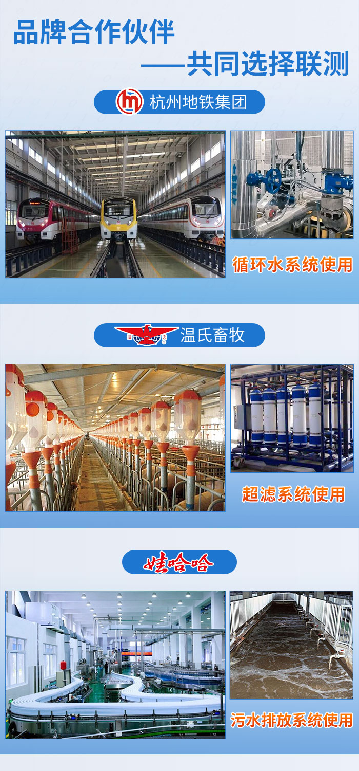 近年來,聯(lián)測儀表廣泛應用于各大領域,與國內(nèi)品牌杭州地鐵集團、溫氏畜牧、娃哈哈......達成合作,專業(yè)的技術,敬業(yè)的服務贏得了諸多企業(yè)的信賴與支持。本次合作也給客戶留下了良好的印象,好評連連,溫州繞城高速公路有限公司表示,后續(xù)多個站點會批量使用我司電磁流量計。