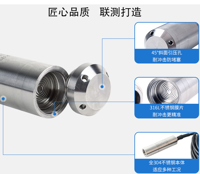 SIN-P260投入式液位變送器SIN-P260投入式液位變送器由高性能擴(kuò)散硅壓阻式壓力傳感器作為測(cè)量元件,把與液位深度成正比的液體靜壓力準(zhǔn)確測(cè)量出來,并經(jīng)過信號(hào)調(diào)理電路轉(zhuǎn)換成標(biāo)準(zhǔn)(電流或電壓)信號(hào)輸出,建立起輸出信號(hào)與液體深度的線性對(duì)應(yīng)關(guān)系,實(shí)現(xiàn)對(duì)液體深度的測(cè)量。產(chǎn)品精度高、體積小,直接投入液體中,即可測(cè)量出變送器末端到液面的液體高度,使用方便。適用于石油、化工、電廠、城市供水、水文勘探領(lǐng)域的液位測(cè)量與控制。經(jīng)過長期老化及穩(wěn)定性篩選,產(chǎn)品性能穩(wěn)定可靠,能夠適用應(yīng)用于環(huán)境比較惡劣的露天現(xiàn)場(chǎng),同時(shí)能夠現(xiàn)場(chǎng)液位顯示,零點(diǎn),滿程可遷移。